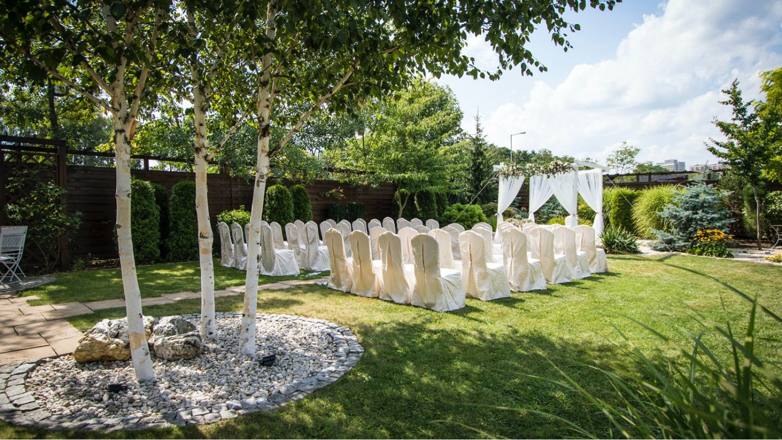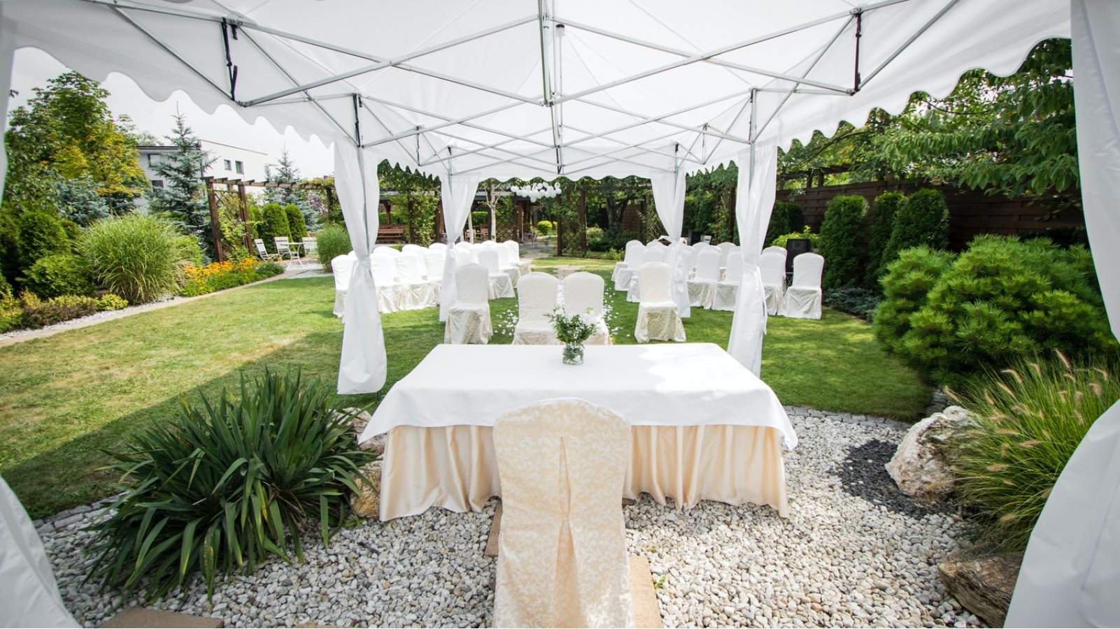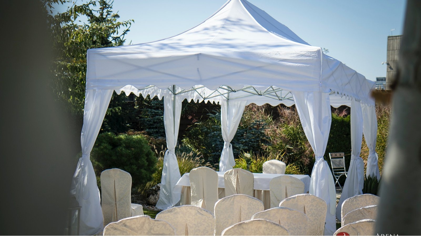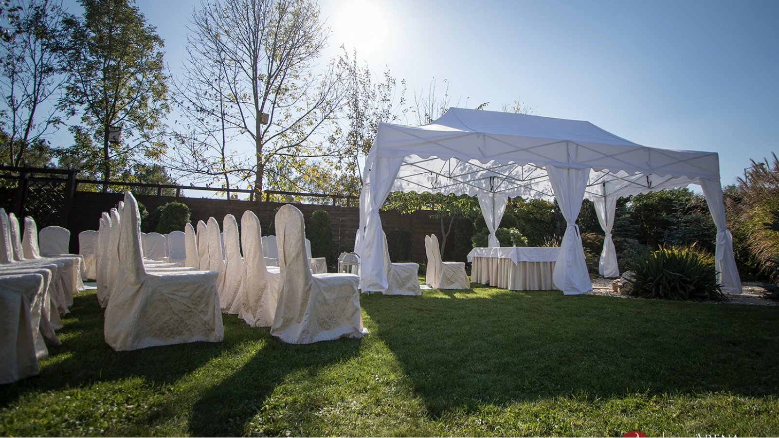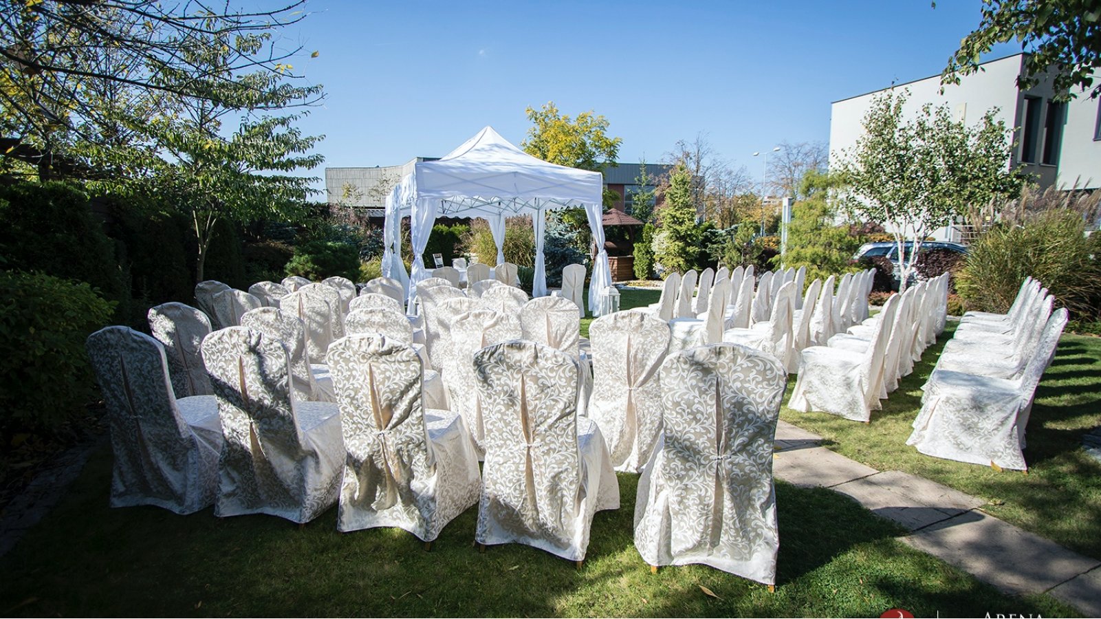 Wspaniały ogród HOTELU ARENA pozwala na zorganizowanie romantycznego ślubu w plenerze, w którym może uczestniczyć nawet 150 Gości. Zapewniamy pełne wsparcie konsultanta weselnego ze strony Hotelu oraz możliwość skorzystania z wiedzy specjalistów do spraw ślubów plenerowych. Kameralna atmosfera, piękne otoczenie oraz zaplecze hotelowe i możliwość organizacji przyjęcia na miejscu – w HOTELU ARENA zorganizujecie najwspanialszy ślub i wesele.