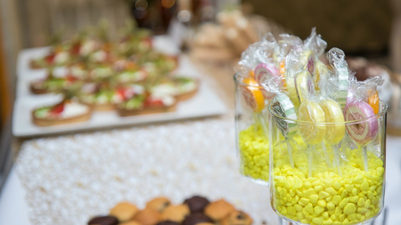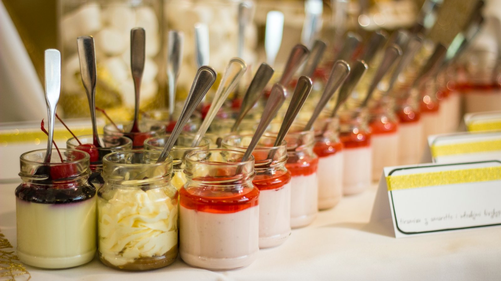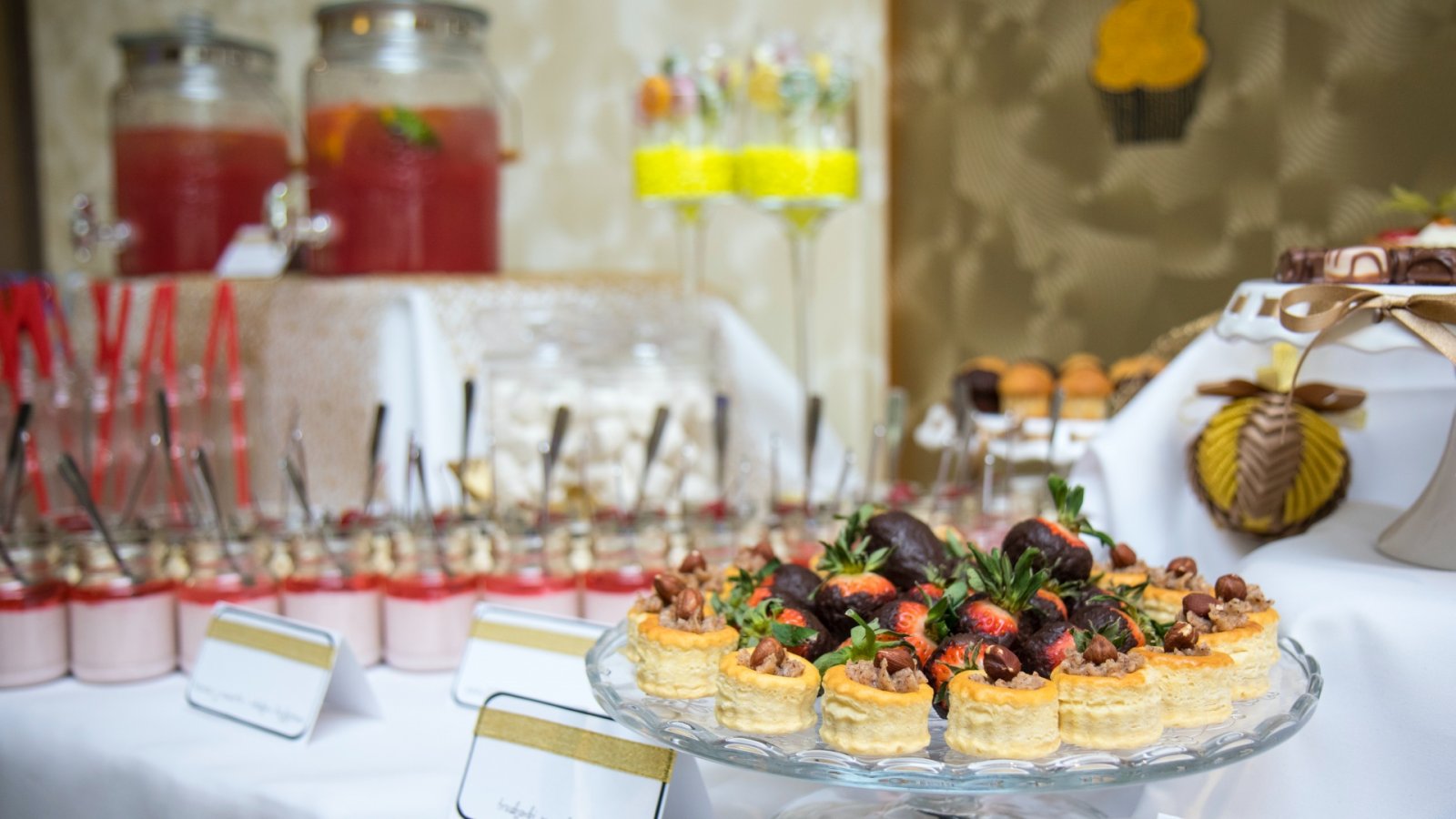 Słodki stół to oryginalne, efektowne, a przede wszystkim pyszne uzupełnienie weselnego menu oraz prawdziwy raj dla łasuchów. W słodkim bufecie na Gości czekają niewielkie, lecz wykwintne słodkości, takie jak m.in.: babeczki, makówki, pianki, tartinki, praliny, kolorowe lizaki – zgodnie z oczekiwaniami Młodej Pary. Aranżacja stołu dopasowana jest do charakteru wesela oraz wystroju sali.