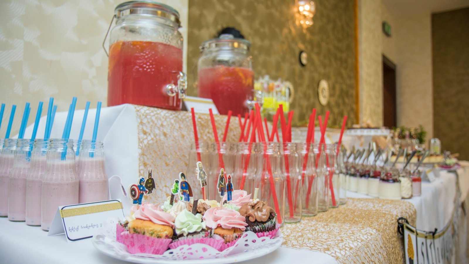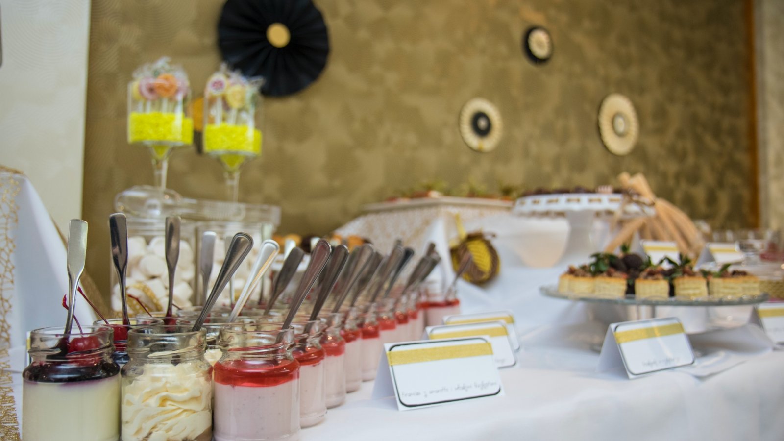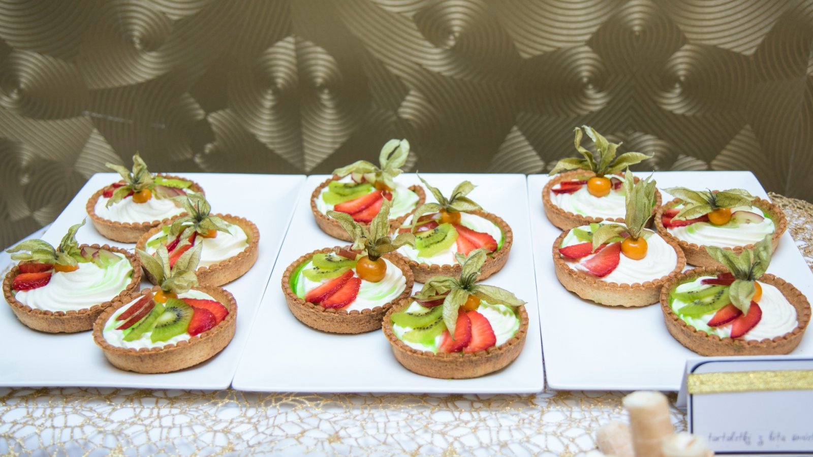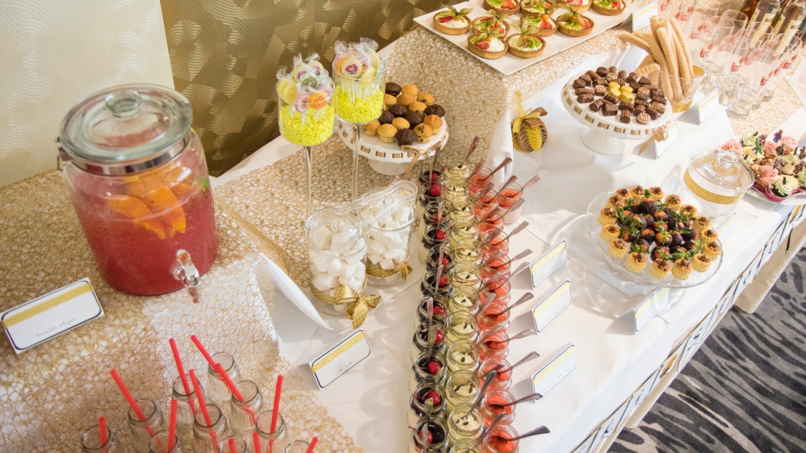 Słodki stół to oryginalne, efektowne, a przede wszystkim pyszne uzupełnienie weselnego menu oraz prawdziwy raj dla łasuchów. W słodkim bufecie na Gości czekają niewielkie, lecz wykwintne słodkości, takie jak m.in.: babeczki, makówki, pianki, tartinki, praliny, kolorowe lizaki – zgodnie z oczekiwaniami Młodej Pary. Aranżacja stołu dopasowana jest do charakteru wesela oraz wystroju sali.